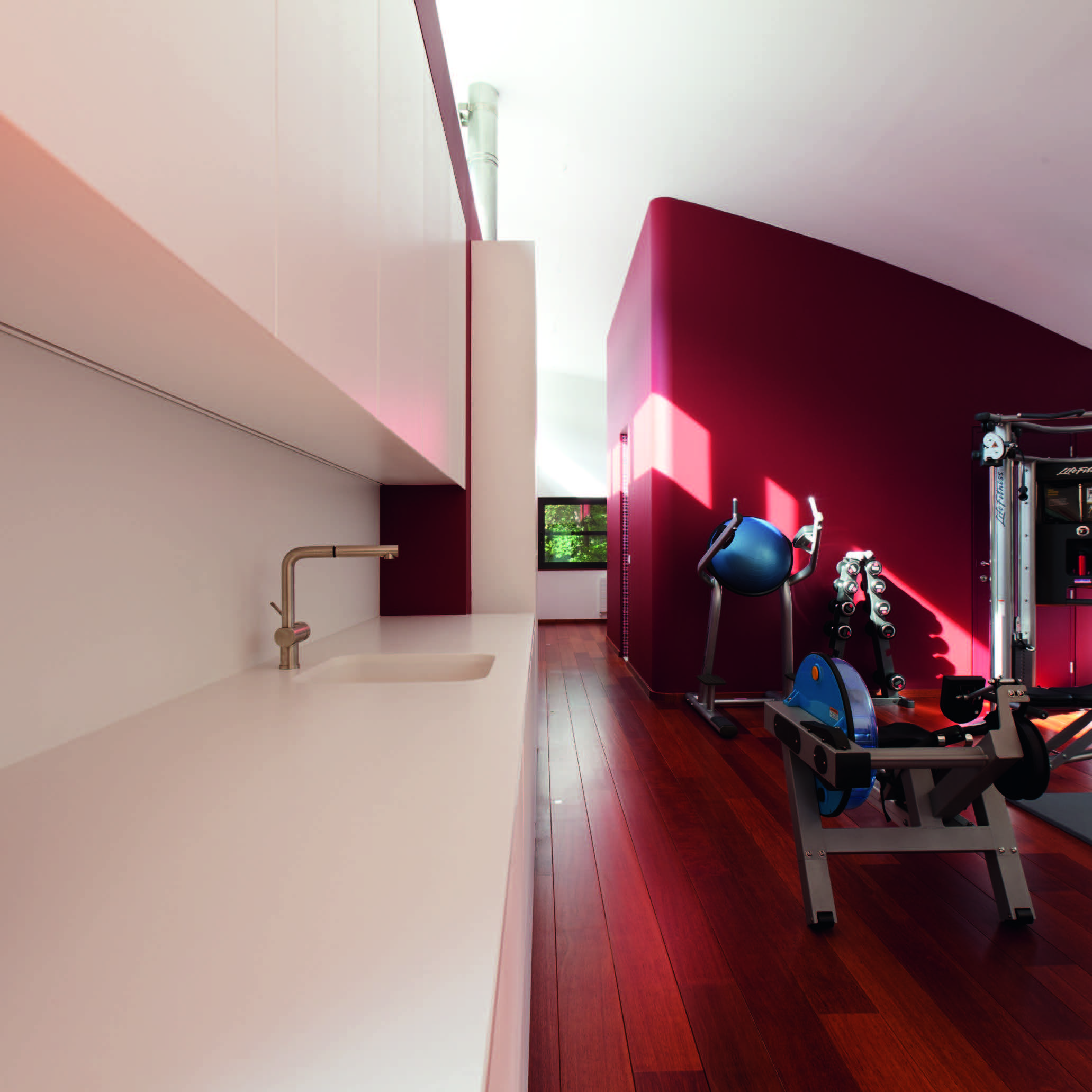 Private Fitness Addition of a private fitness and wellness space to a modern villa in Kapellen. Véronique Orensarchitect & founding partnerKoen Van Grimbergenarchitect MRE & founding partner