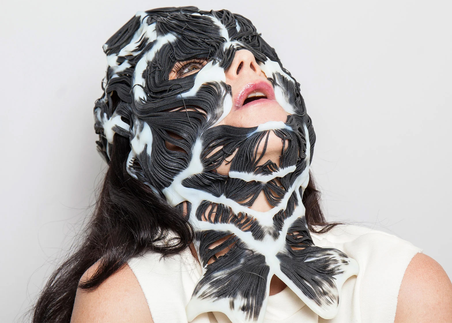 • The Neri Oxman Mask – Not just a fashion piece, but a living sculpture designed with MIT’s Neri Oxman – a glowing, rootlike exoskin that looked like Björk became part-organism, part-architecture. It wasn’t about hiding. It was about revealing her interior cosmos.